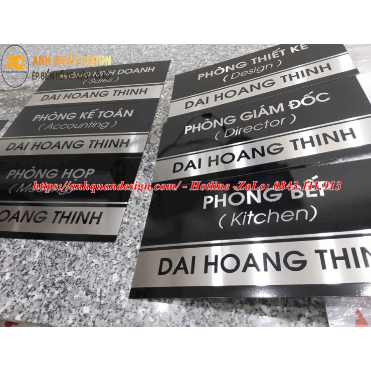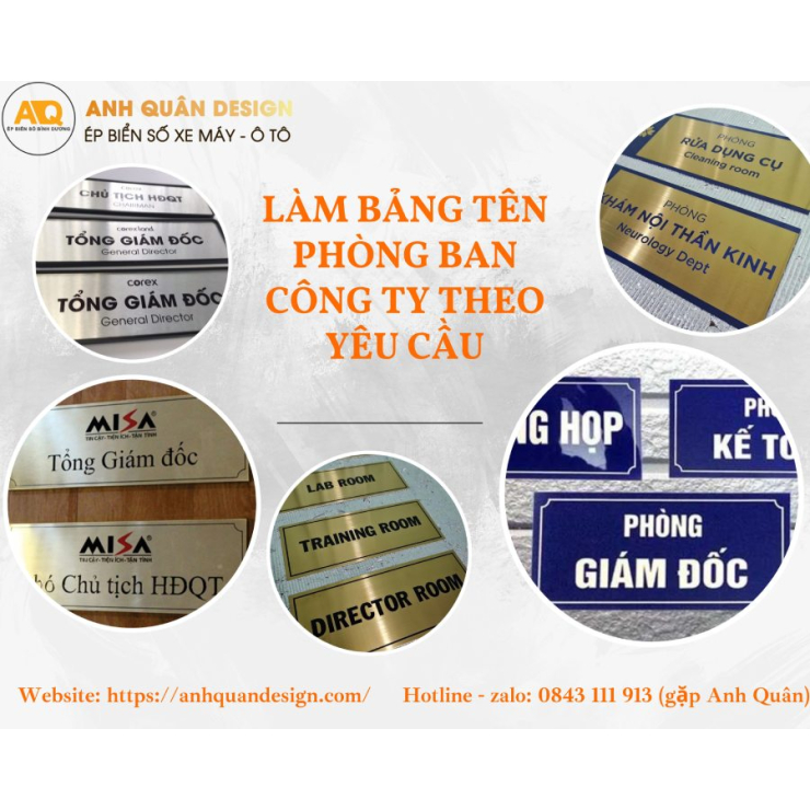 Để sở hữu bảng tên phòng ban chất lượng, đẹp mắt và phù hợp với hình ảnh doanh nghiệp, Anh Quân Design ép biển số là lựa chọn hàng đầu. Với kinh nghiệm lâu năm trong thiết kế và sản xuất bảng tên, Anh Quân Design cam kết mang đến sản phẩm chuyên nghiệp, bền đẹp và dịch vụ tận tâm.