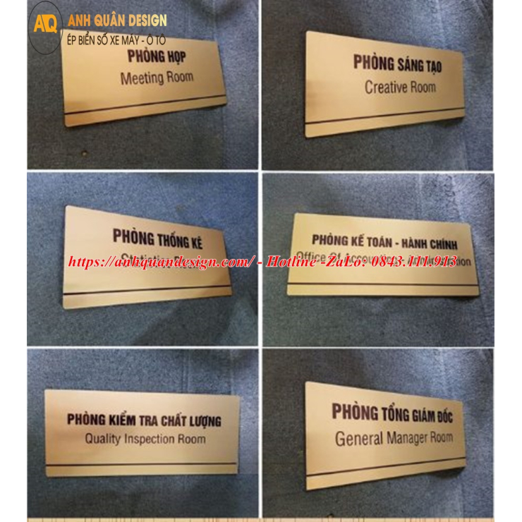 Với Anh Quân Design, doanh nghiệp sẽ có bảng tên phòng ban chuyên nghiệp, sang trọng, đồng bộ và thể hiện uy tín trước khách hàng, đối tác và nhân viên.