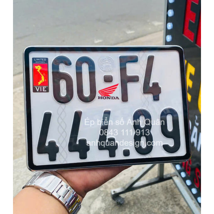 Có nên ép bảng số xe AB có logo Honda và cờ Việt Nam để tăng tính thẩm mỹ?